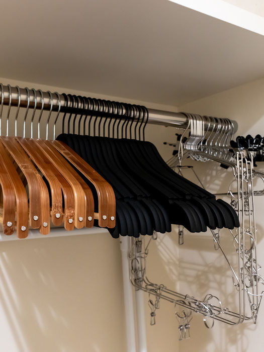 The closet is spacious and spacious, with plenty of space to store summer and winter coats. A clothesline and clothes hangers are also provided.